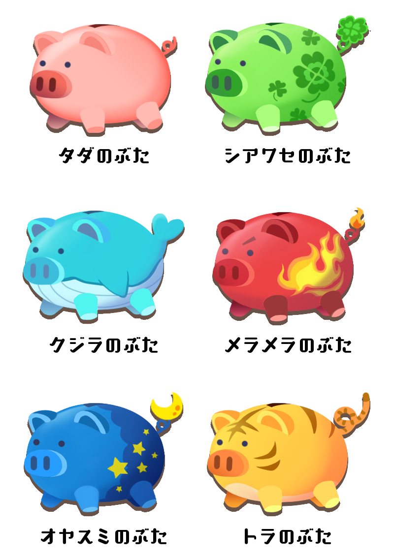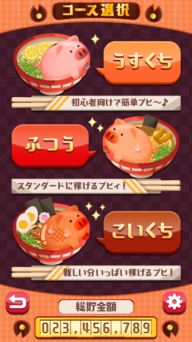 難易度分けされた3つのコースから好きなコースを選んで、6つの貯金箱をお金でいっぱいにしましょう。