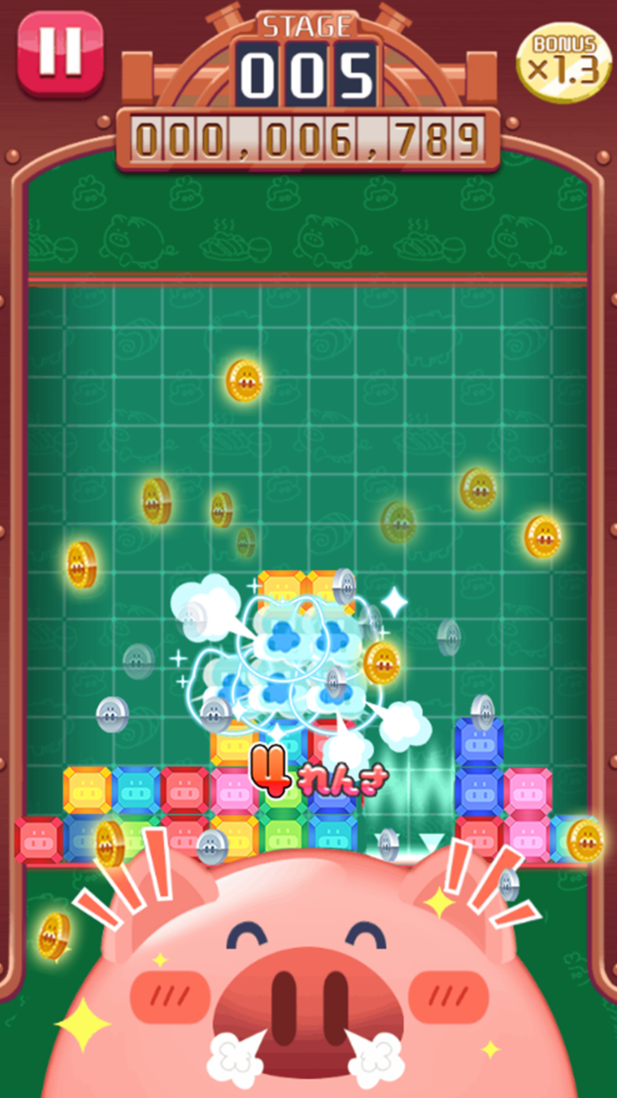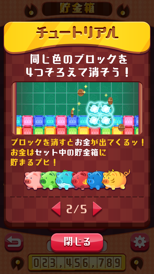 ブロックを消してお金を貯める貯金型パズルゲーム。