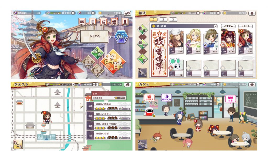 本ゲームは京都の街を盛り上げる為に、京都府商工労働観光部ものづくり振興課および公益財団法人京都産業21と全面的に協力を行い展開してまいります。ゲーム内に登場するスポットとして、福知山城、京都タワー、伏見稲荷大社、京都府庁旧本館、世界遺産 平等院などから正式に許諾をとりゲームを提供しています。