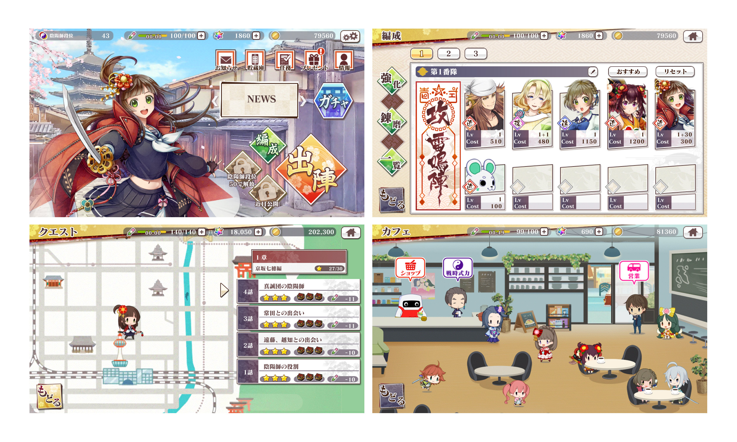 ゲーム内には、「神刀使い」と呼ばれるキャラクターたちが登場し、京都崩壊を防ぐために、強大な妖魔たちとの戦いを繰り広げていきます。