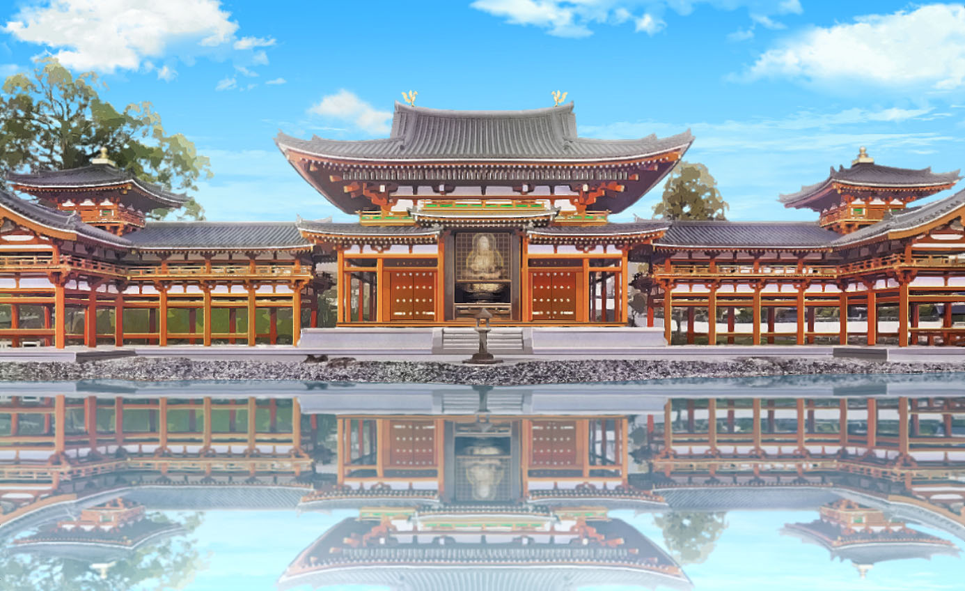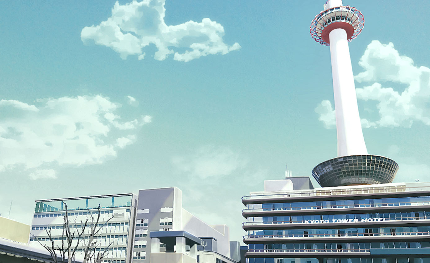 そして、そのような我々の思いにご賛同いただき、福知山城、京都タワー、伏見稲荷大社、京都府庁旧本館や、世界遺産である平等院などから正式な許諾を得て背景制作を行なうことができました。