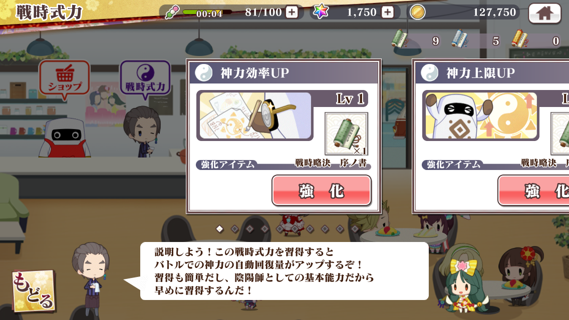 ショップは、「陰陽師段位」が50に満たないと利用することができません。
