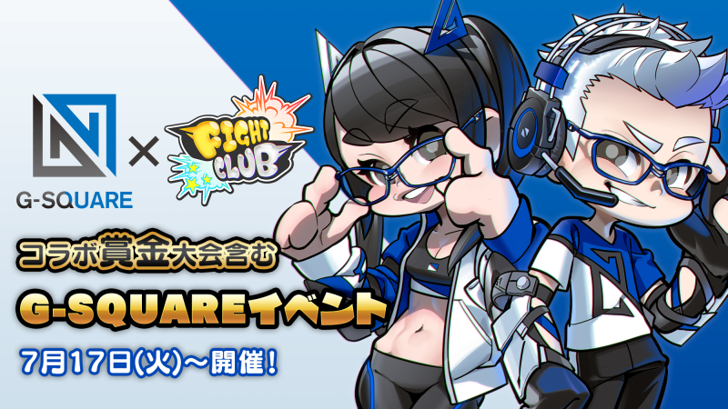 ポノス株式会社(本社:京都府京都市、代表取締役:辻子依旦、以下「ポノス」)は、ワンチャンある系対戦アクションゲーム『ファイトクラブ』において、初の外部スポンサードによる賞金大会「G-SQUARE No.1決定戦」を含む新イベント「G-SQUAREイベント」を7月17日(火)より開催いたします。