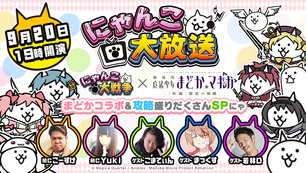 コラボ開催記念!第9回「にゃんこ大放送まどかコラボ&攻略盛りだくさんSPにゃ」9/20(木)19時より放送決定!