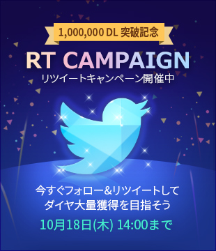 ●100万ダウンロード記念!フォロー&リツイートキャンペーン