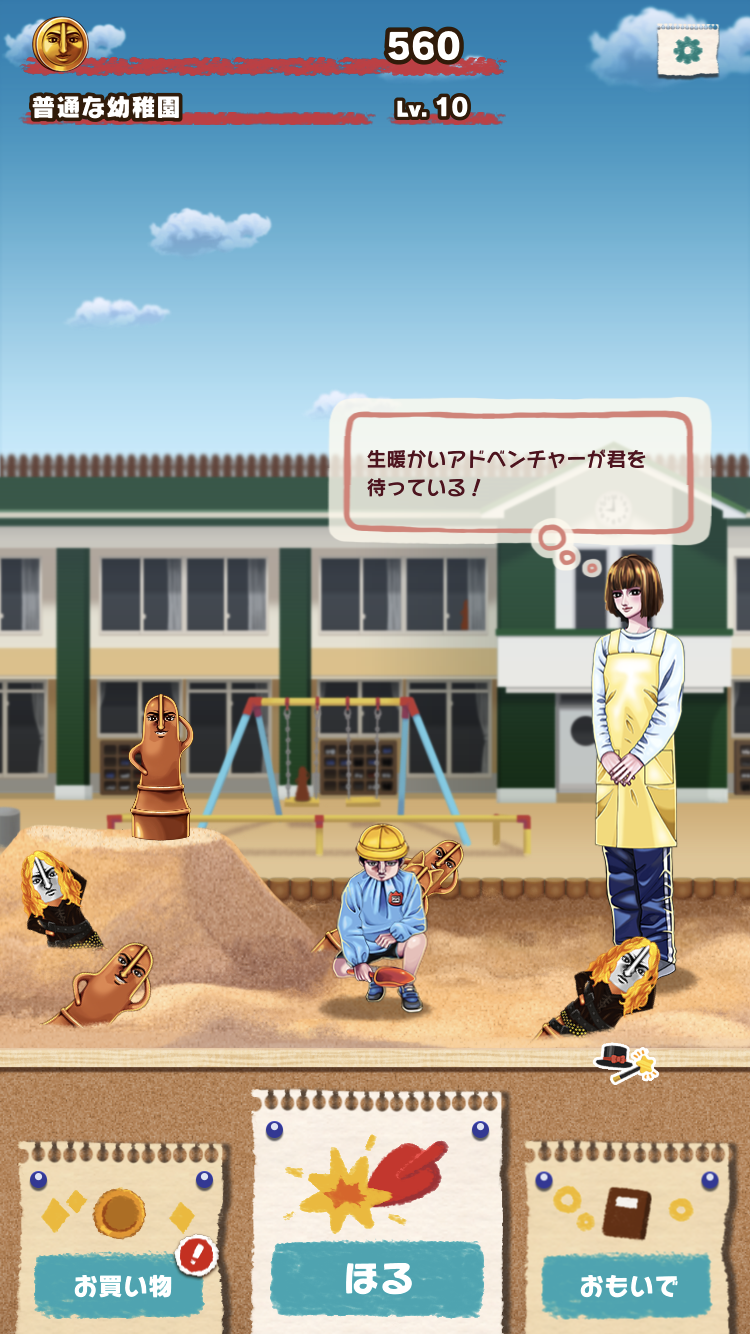 愛する女性の為、ハニワを掘り、幼稚園を大きくし、そしてハニワ図鑑を完成させましょう!そう、それこそが『ハニワほるほる』なのです。
