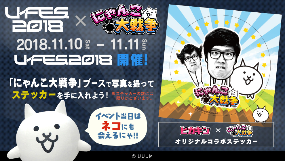 「U-FES.2018」に「にゃんこ大戦争」ブース登場! 写真を撮ってコラボオリジナルステッカーを貰おう!