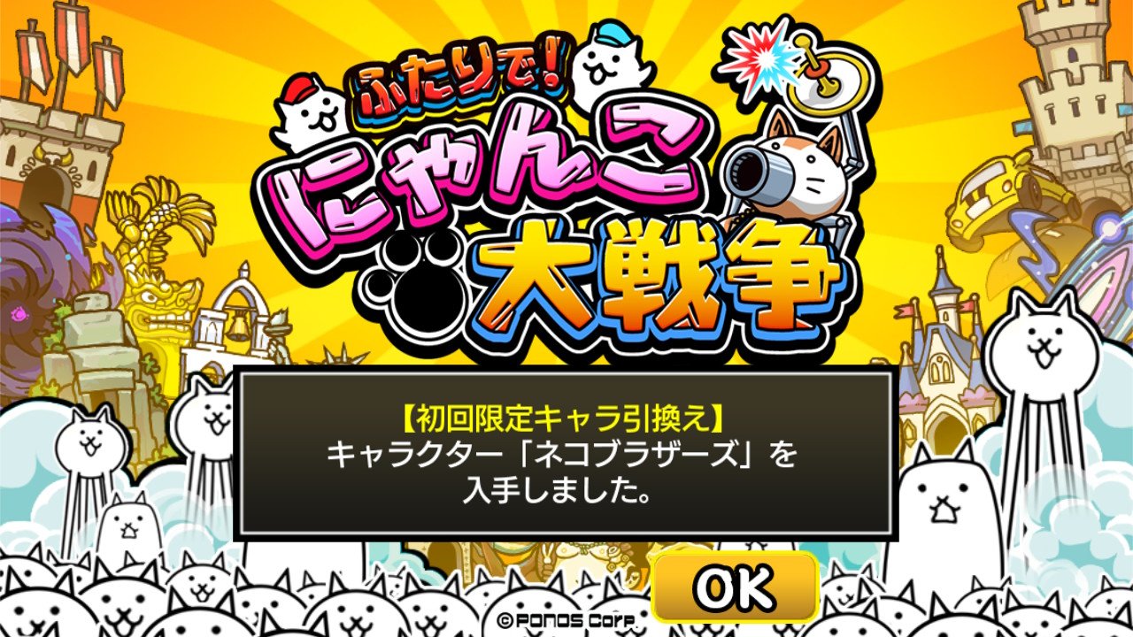 ポノス株式会社(本社:京都府京都市、代表取締役:辻子依旦)は、世界累計4000万ダウンロードを記録した同社のスマートフォン向けゲームアプリ『にゃんこ大戦争』のNintendo Switch™タイトル『ふたりで!にゃんこ大戦争』の販売を2018年12月20日(木)よりニンテンドーeショップにて開始(あらかじめDLは12月13日から開始)いたしますので、これをお知らせいたします。