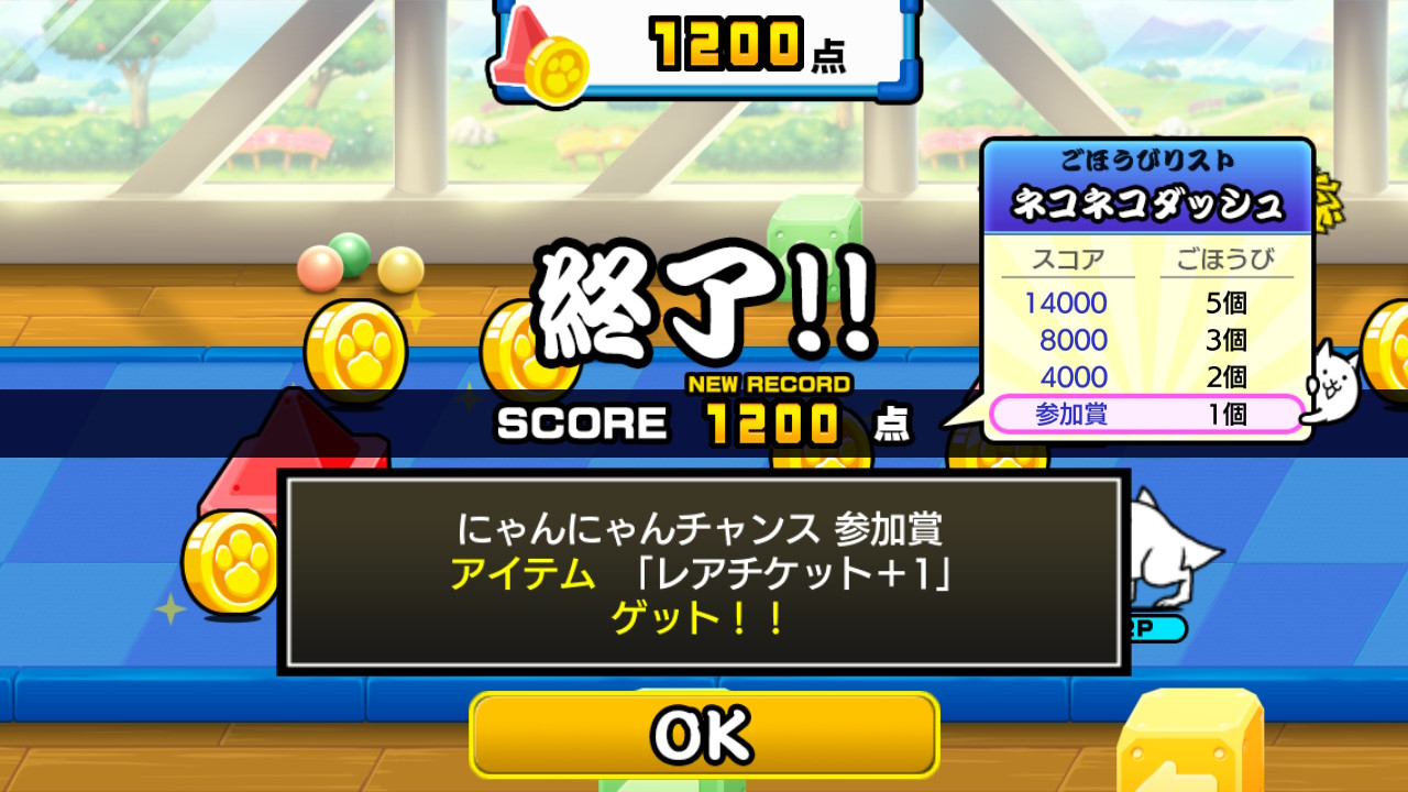 ゲームを進めていくと、たまにミニゲームチャンス「にゃんにゃんチャンス」が出現します。ミニゲームをしてスコアを伸ばせば、ゲーム内で使えるアイテムを手に入れることができます。