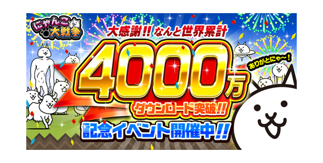 「にゃんこ大戦争」4000万ダウンロード 突破のお知らせ
