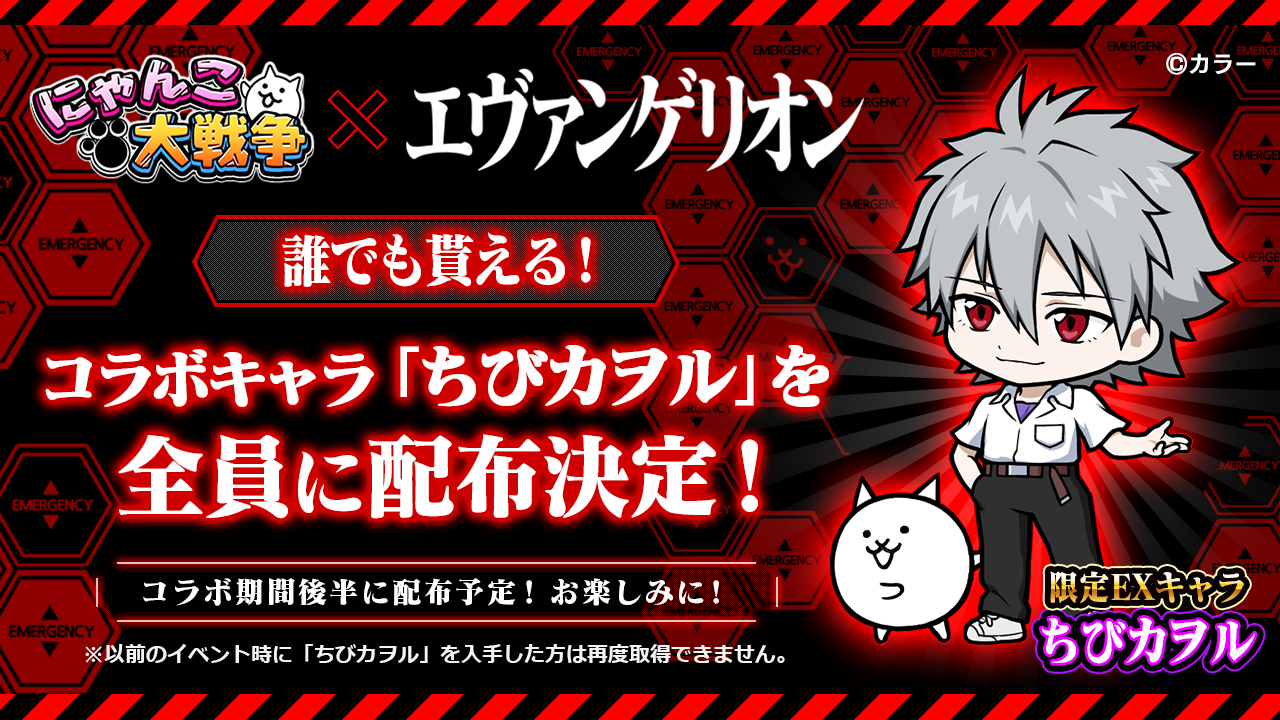 全プレイヤーに限定EXキャラ「ちびカヲル」を配布いたします。イベント期間後半にログインすることで入手することができます。