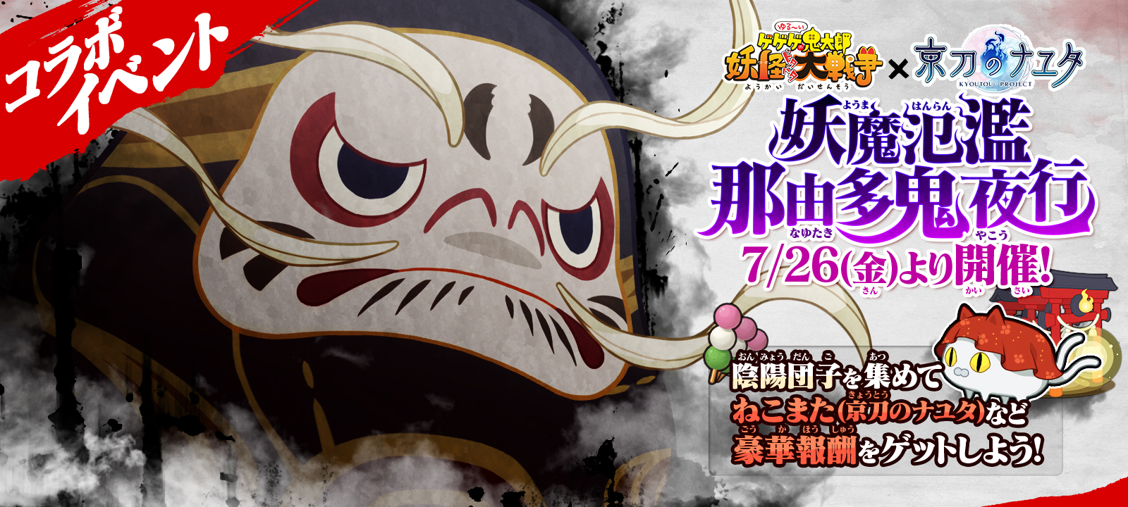 7月26日(金)11:00からは、コラボ限定イベント「妖魔氾濫!那由多鬼夜行!!」を開催いたします。