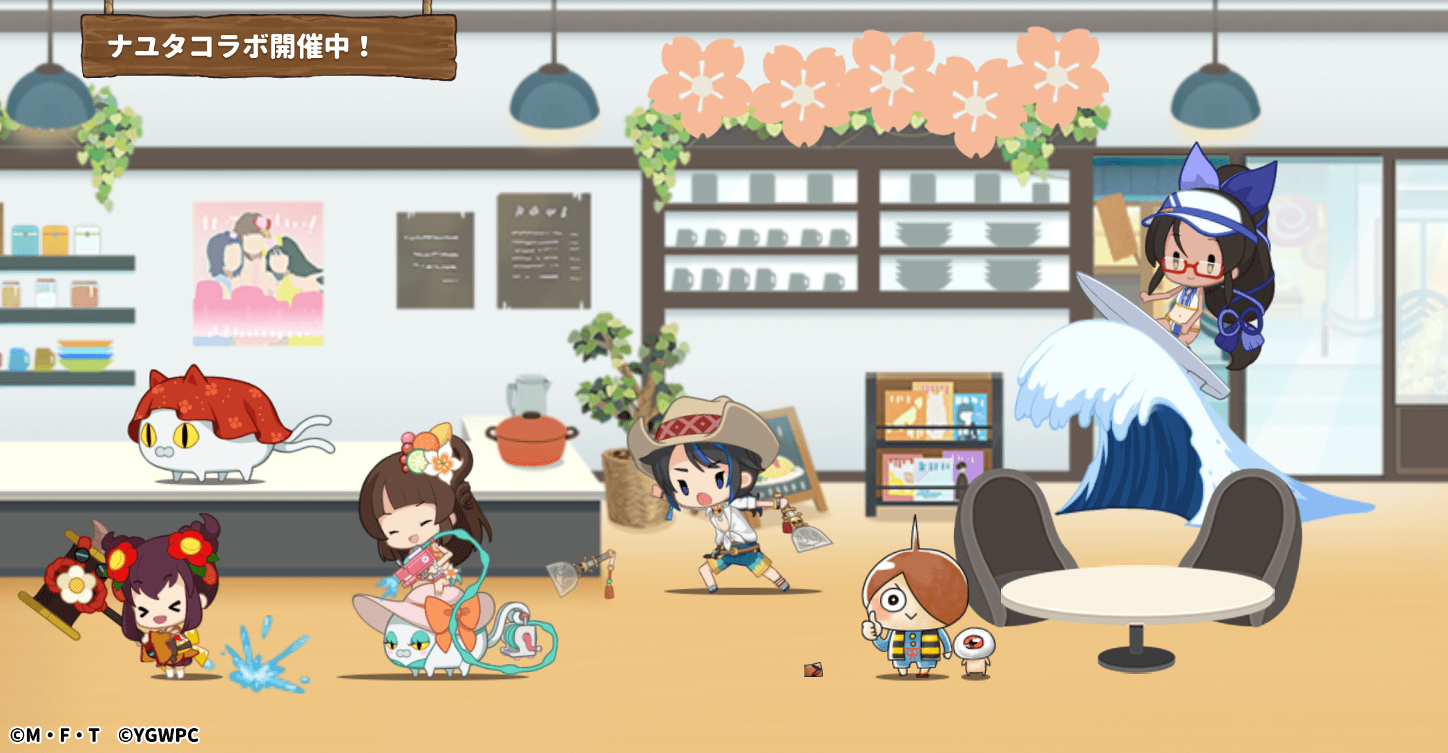 ゆるゲ大戦争製作委員会(配信・企画:東映アニメーション株式会社、企画・開発・運営:ポノス株式会社、企画協力・運営協力:株式会社ディー・エヌ・エー)は、人気アニメ『ゲゲゲの鬼太郎』を題材としたスマートフォン向けゲーム『ゆる~いゲゲゲの鬼太郎 妖怪ドタバタ大戦争』(略称:ゆるゲゲ)におきまして、『ゆるゲゲ』×『京刀のナユタ』コラボイベント第2弾(https://yurukita-game.com/event/2019_nayuta02/index.html)に新たな水着キャラクターが追加された「コラボガチャ(弐)」の追加及び、コラボ限定イベント「妖魔大氾濫!那由多鬼夜行!!」を開催しましたことをお知らせいたします。