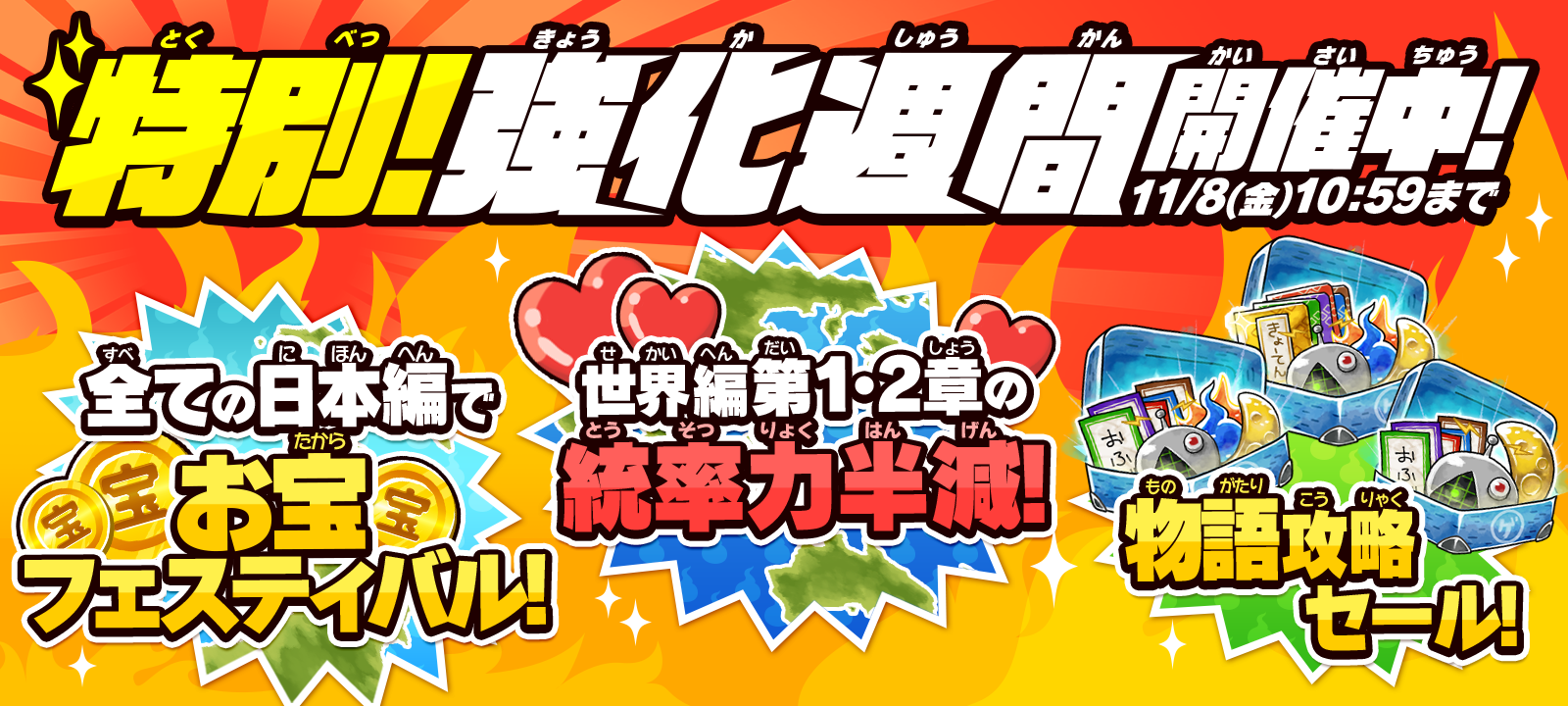 期間中、毎日特定の時間で「日本編」のお宝入手確率がアップする「お宝フェスティバル」を開催します!