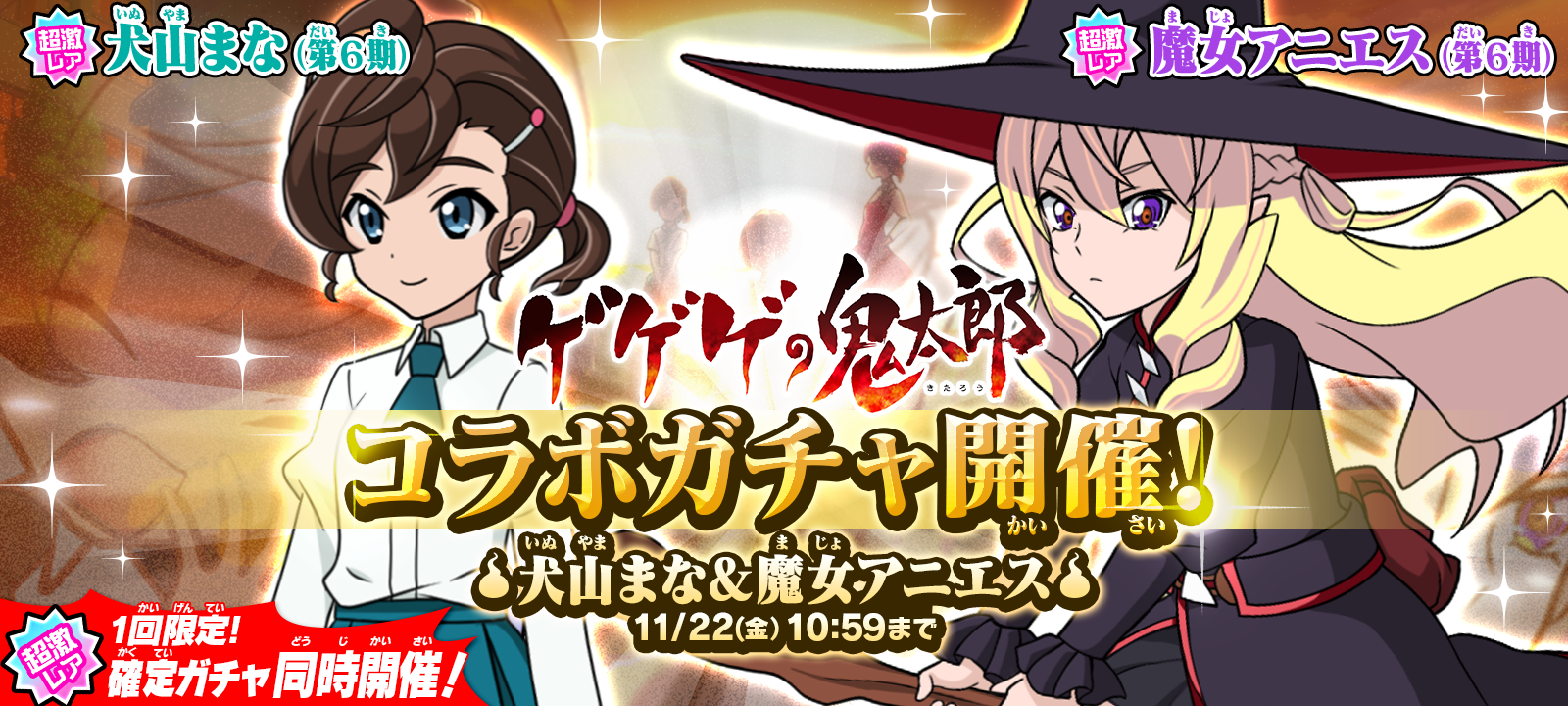 コラボガチャ第2弾から登場する超激レアは「犬山まな(第6期)」、「魔女アニエス(第6期)」の2体のみ。