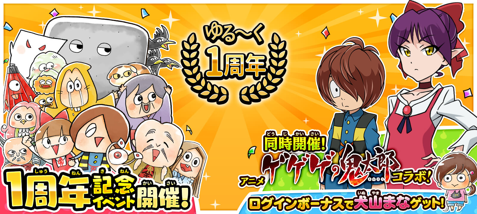『ゆるゲゲ』1周年を記念した、アニメ『ゲゲゲの鬼太郎』コラボガチャ第2弾がスタートしました!