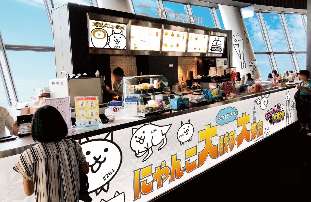 本イベントでは、地上450mの天望回廊を中心に『にゃんこ大戦争』に登場するキャラクターの装飾を実施するほか、コラボ限定のオリジナルグッズやオリジナルカフェメニューも販売します。