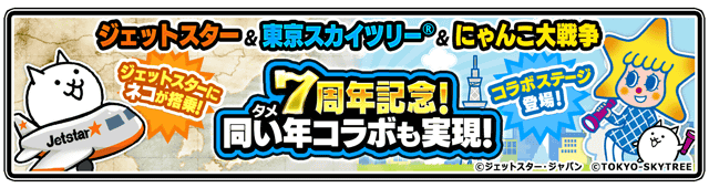 ■7周年同い(タ)年(メ)コラボ! 「ジェットスター」&「東京スカイツリー®」&『にゃんこ大戦争』コラボ開催!