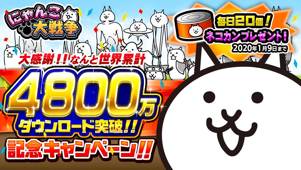 ●4800万ダウンロード突破を記念して毎日ネコカン20個プレゼント!