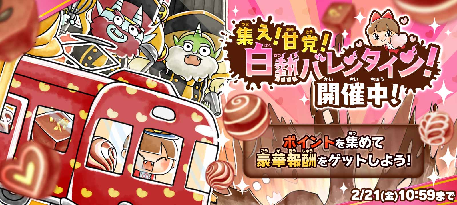 バレンタインにぴったりな可愛らしい姿のキャラクターが限定登場する「バレンタインガチャ」を開催いたします!