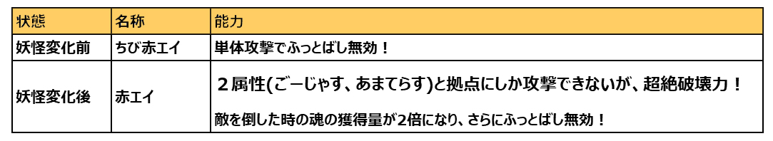 挑戦するステージに合わせて妖怪変化前、変化後を切り替えることで、今まで以上に戦略の幅が広がり活躍が期待できるキャラクターです。ぜひチェックしてくださいね。