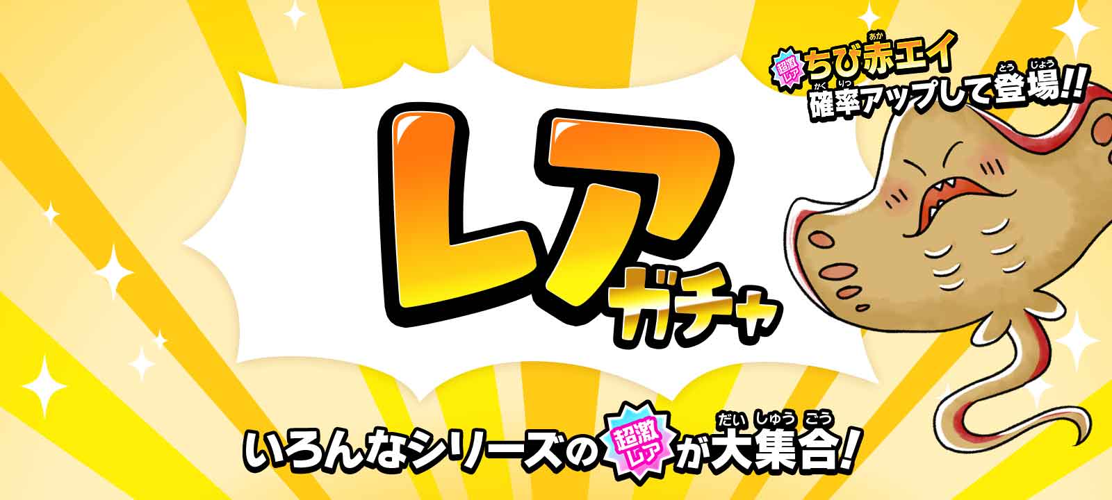 開催期間中、「レアガチャ」に「ちび赤エイ」が出現アップで登場します!この機会にぜひ手に入れましょう!