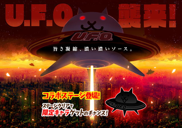 濃い侵略者が登場するコラボ限定ステージ「U.F.O.襲来!」では、ステージクリアでコラボ限定キャラクター「ネコU.F.O.」が手に入るチャンス!また、コラボイベントを対象としたスペシャルミッションも「にゃんこミッション」内に登場しています。濃い限定コラボを、ぜひお楽しみください。