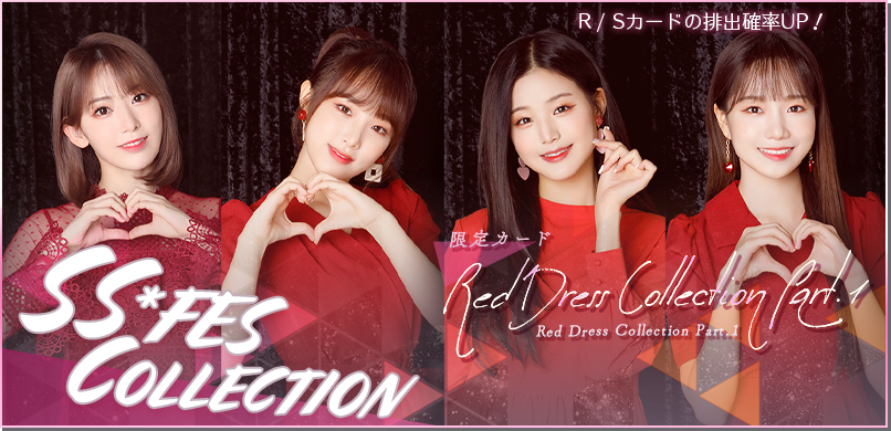 「SS*FES COLLECTION」では、「Rカード」と「Sカード」の入手確率がアップしております。また、新衣装となる限定カード「Red Dress Collection Part.1」が初登場となります。限定カードでは特典でカードのメンバーのメイキング動画を見ることができます。このカードは「SS*FES COLLECTION」のガチャのみでしか獲得できないので、是非この機会にチェックしてみてください。
