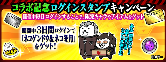 3日間ログインでコラボ限定EXキャラクター「ネコゲンドウ&ネコ冬月」を入手できます。