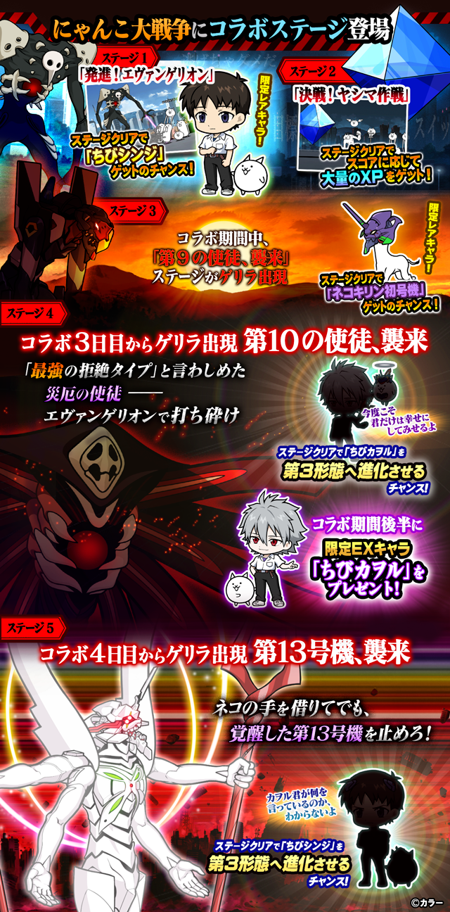 前回のコラボで登場したステージがすべて復刻!「にゃんこ大戦争」で再現される「エヴァンゲリオン」の物語をぜひお楽しみください。