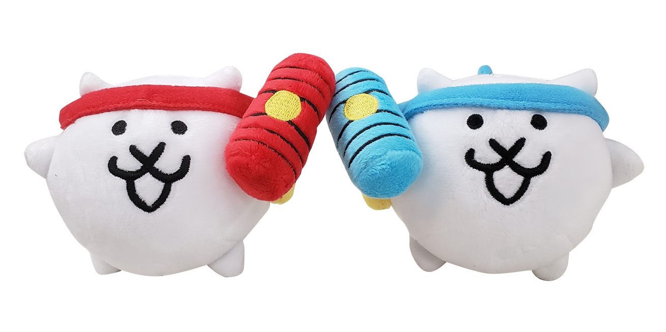 赤と青のピコピコハンマーをそれぞれ振りかぶった「ネコピコハン」2体がセットになったぬいぐるみは、昨年人気を博した「ネコブラザーズ」ぬいぐるみに続くモデルとなります。(希望小売価格:2100円(税別))