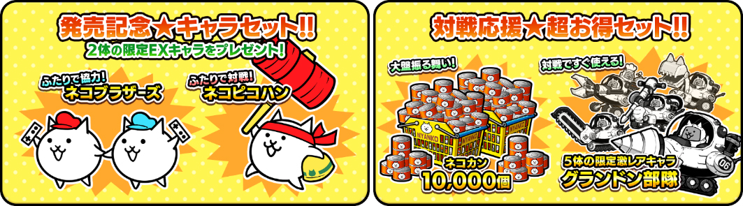 ・対戦応援★超お得セット(右):ネコカン1万個・グランドン部隊キャラクター5体(激レア)