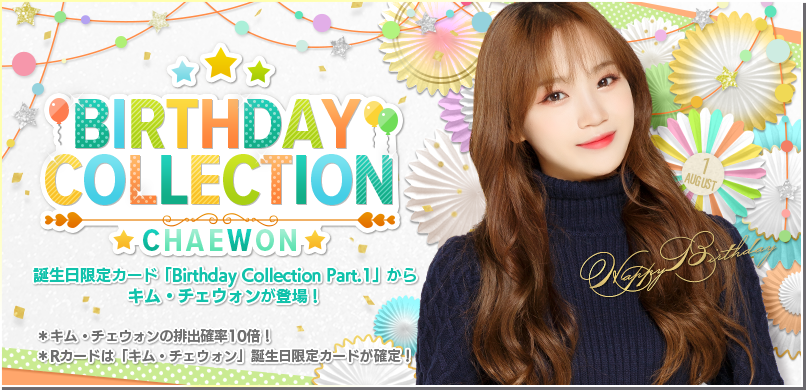 「BIRTHDAY COLLECTION」ではキム・チェウォンのカードの排出確率が通常時の10倍となります。手に入りやすくなったこの機会に是非カード集めて、育成してみましょう。カードには特典もついているので、ゲームでしか見られないキム・チェウォンをチェックしてみてください。