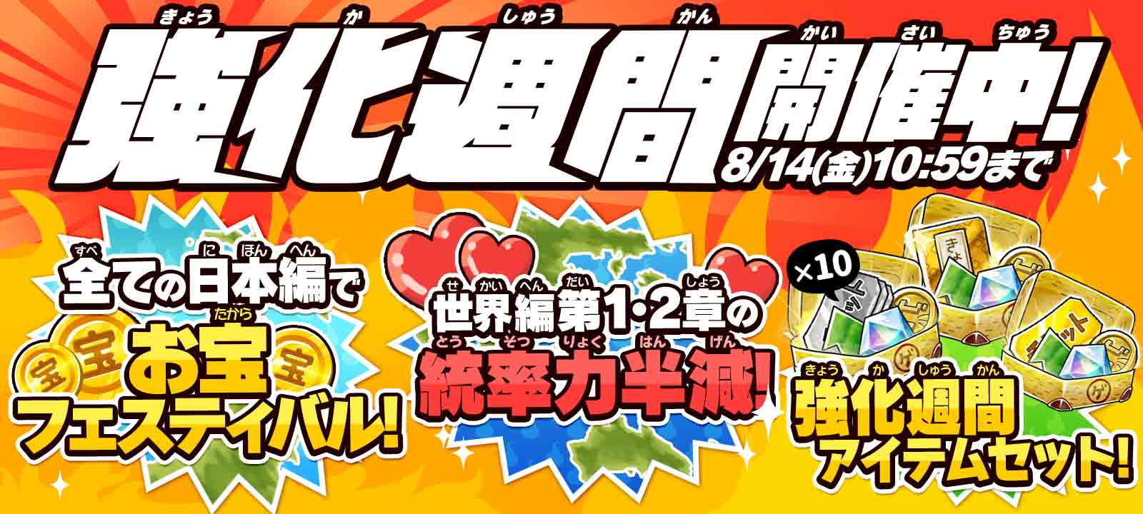 ※「お宝フェスティバル(日本編 最終章)」、「統率力半減(世界編 第1章・第2章)」の開催時刻については、ゲーム内のお知らせをご確認ください。