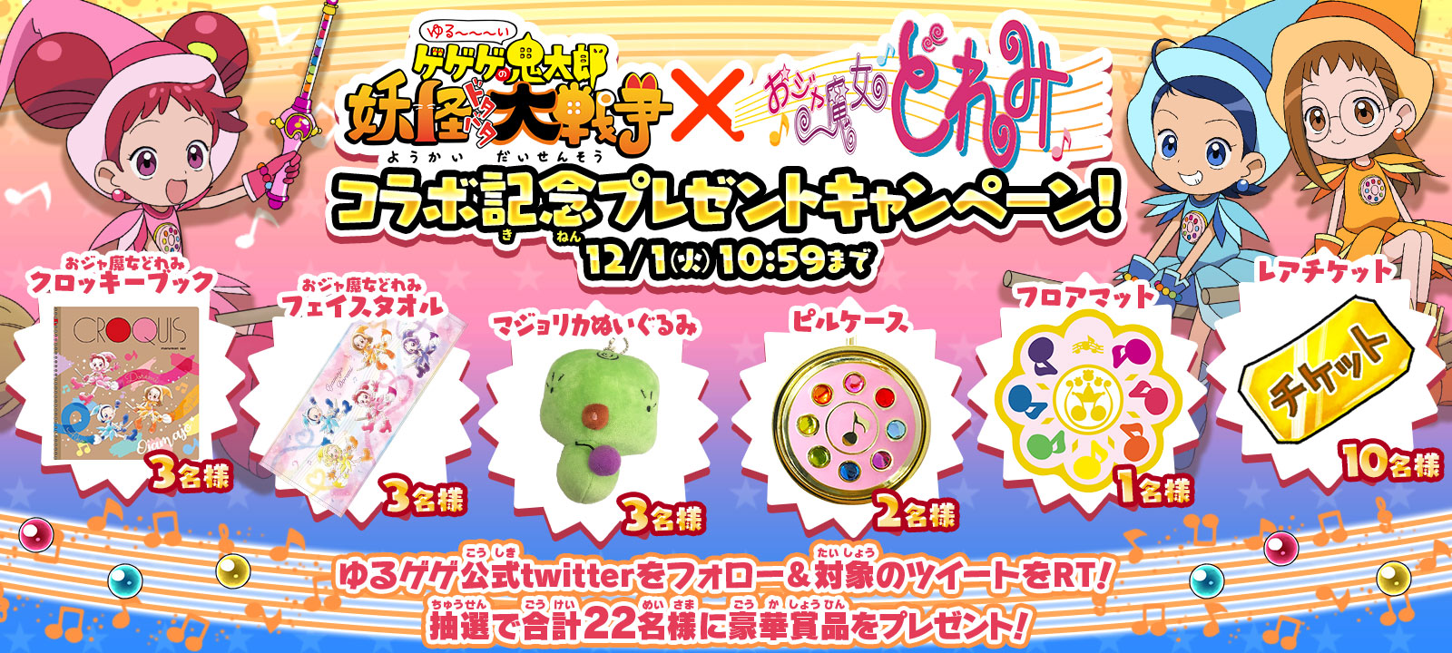 『ゆるゲゲ』×『おジャ魔女どれみ』コラボを記念しておジャ魔女どれみグッズやレアチケットを合計22名様にプレゼント!