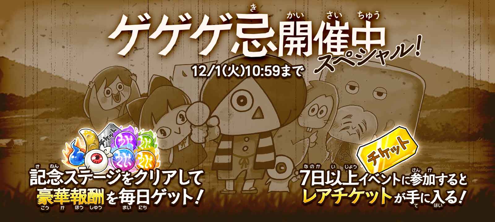 本ガチャは「鬼太郎(第 6 期)」を始めとしたアニメ『ゲゲゲの鬼太郎』のキャラクター全8体が出現します。