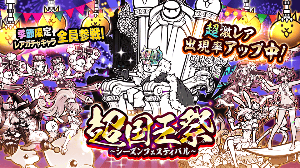 季節の限定キャラクターが全員登場する限定レアガチャ「超国王祭~シーズンフェスティバル~」を開催いたします。