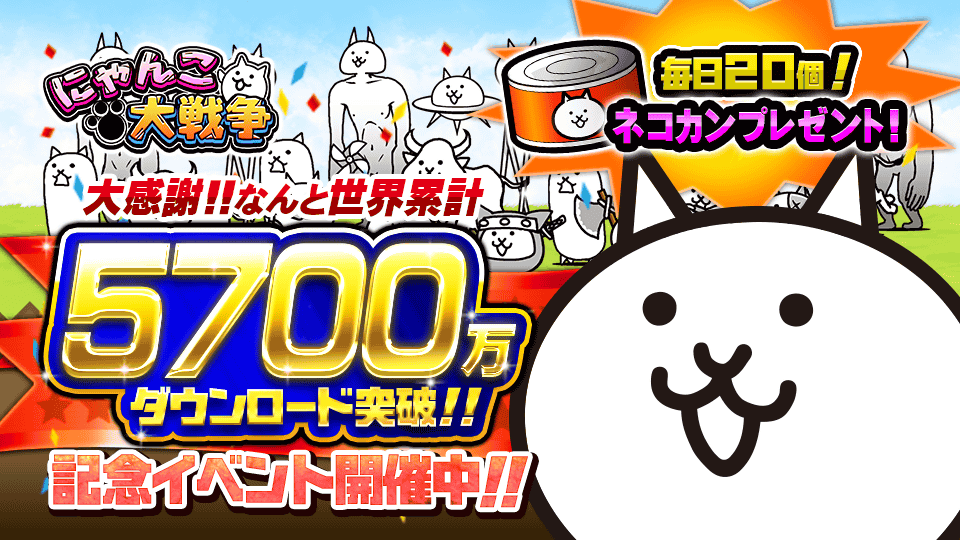 5700万ダウンロード突破を記念して毎日ネコカン20個プレゼント!