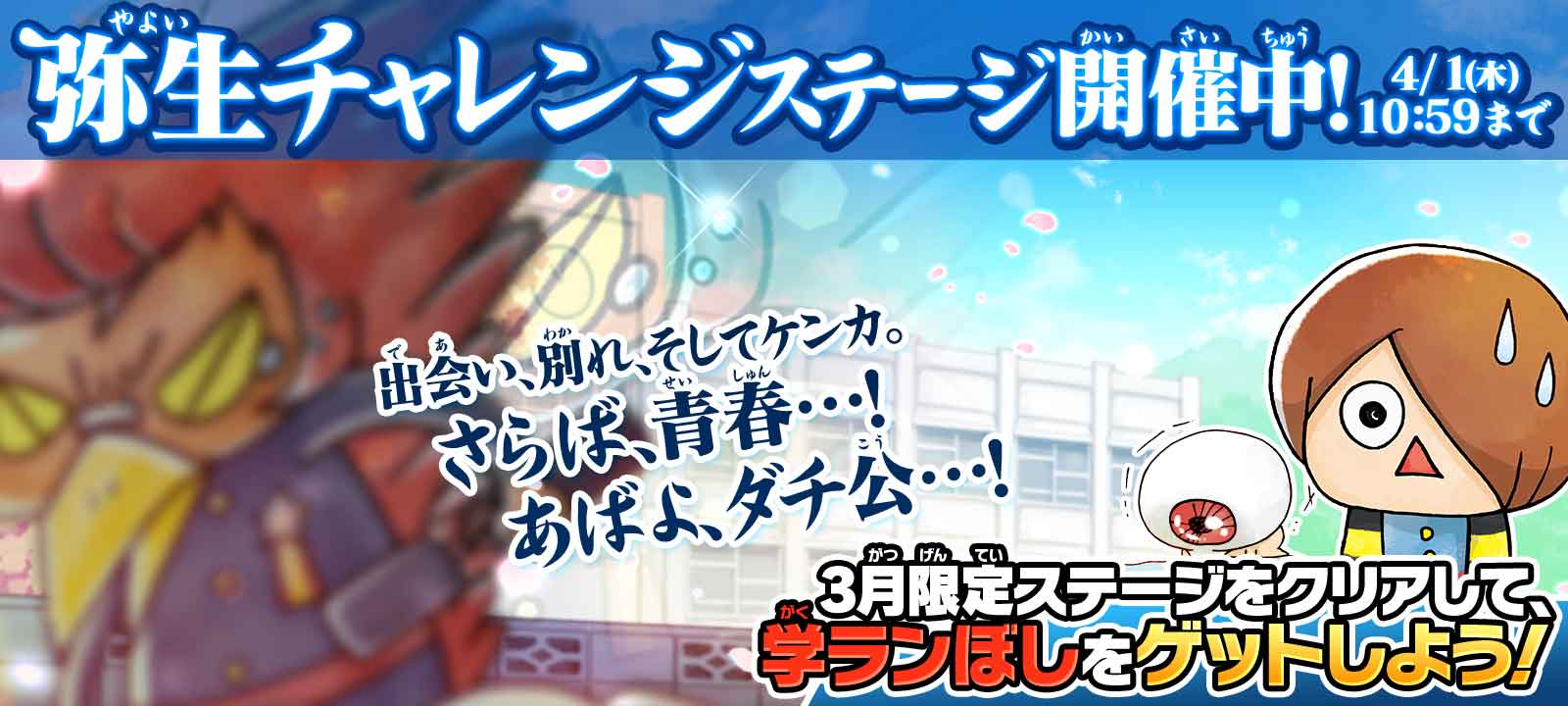 クリア時に一定の確率でSPキャラクター「学ランぼし」が手に入る、3月限定ステージを開催いたします。