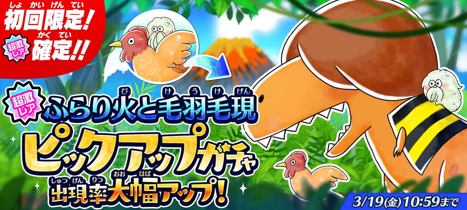 期間限定で新超激レア「ふらり火と毛羽毛現」の出現確率がアップする「ピックアップガチャ」を開催いたします。