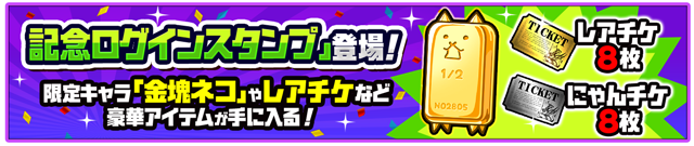 また、期間中30日間ログインすると限定EXキャラ「金塊ネコ」が手に入る!毎日忘れずにログインしてくださいね。