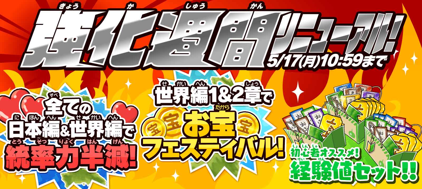 ついに世界編第1章と第2章で「お宝フェスティバル」が始まります。さらに統率力半減も日本編と世界編全てに!