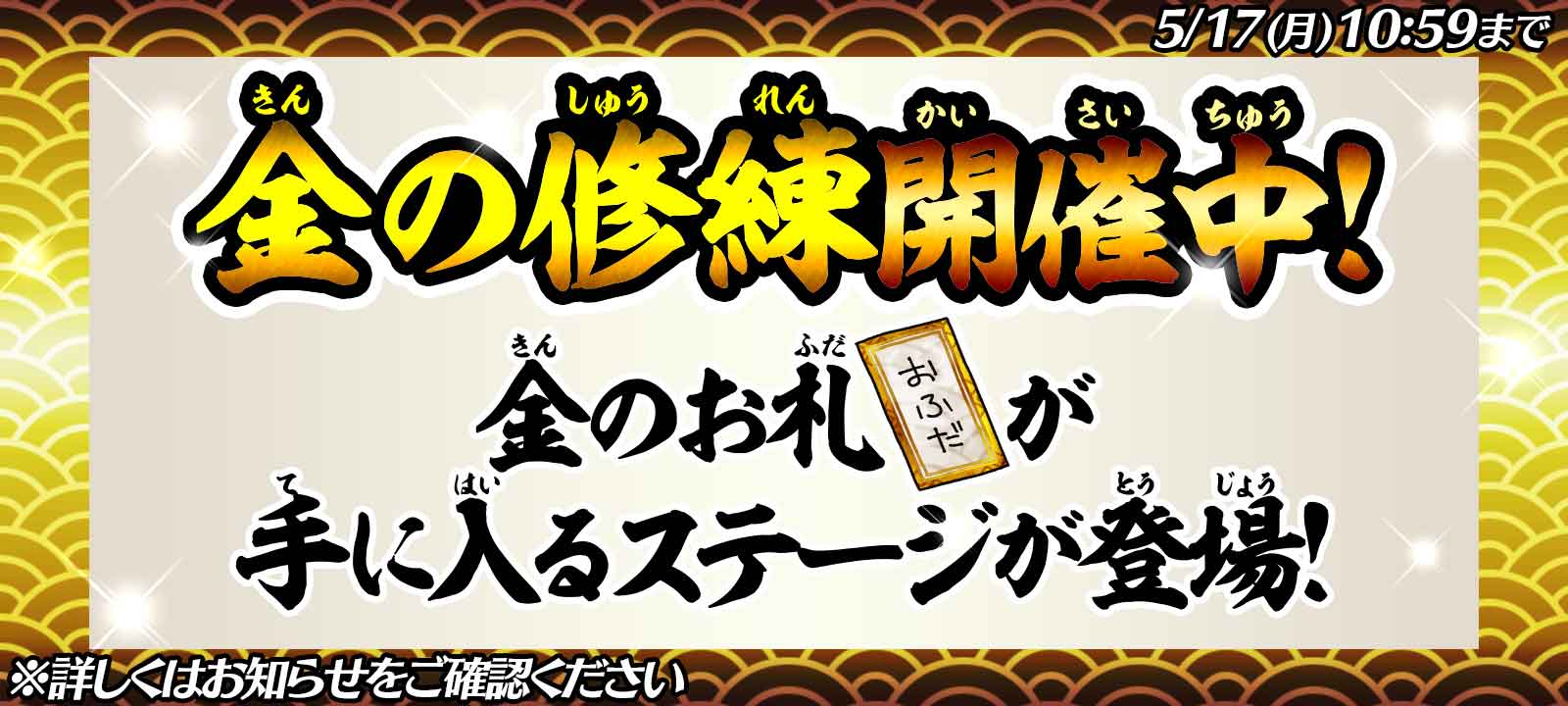 「金のお札」を手に入れよう!「金の修練」ステージ開催!