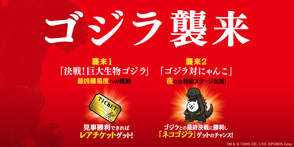 コラボ開始日の19:00からは「ゴジラ対にゃんこ」の初級ステージも登場!