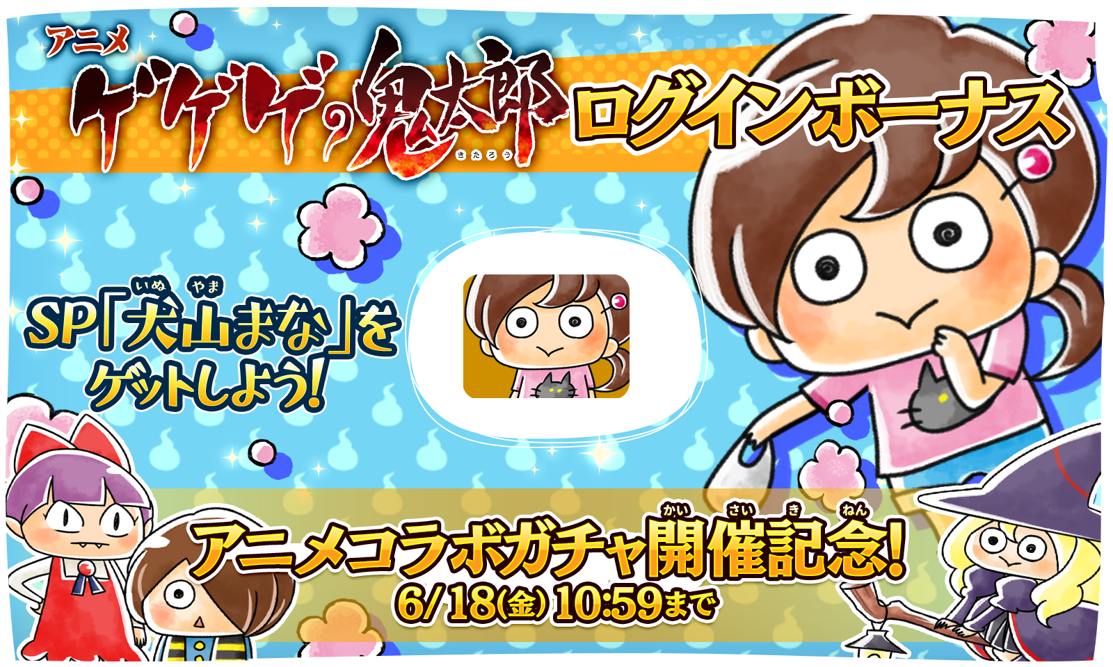『ゆるゲゲ』、ゲゲゲの鬼太郎(第6期)『アニメコラボガチャ』再登場! さらに『犬山まな』が手に入るログインボーナスも同時開催!