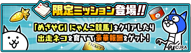 「めざせGI にゃんこ競馬」イベントを対象としたスペシャルミッションが「にゃんこミッション」内に登場いたします。