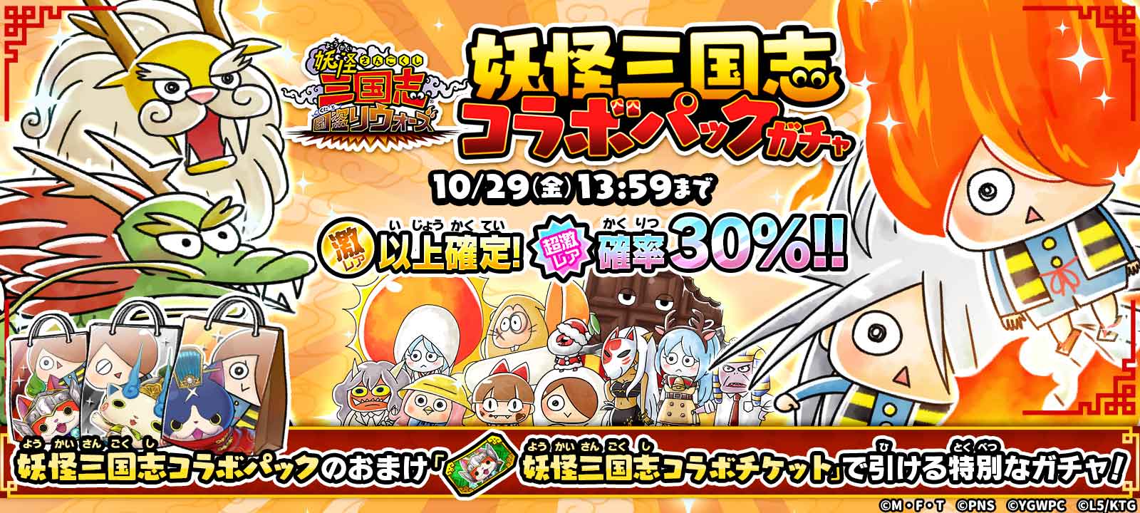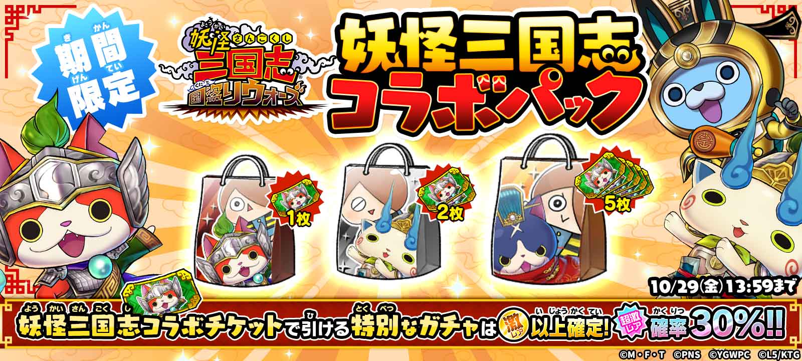 限超激レアの出現確率30%!「妖怪三国志 コラボパックガチャ」!