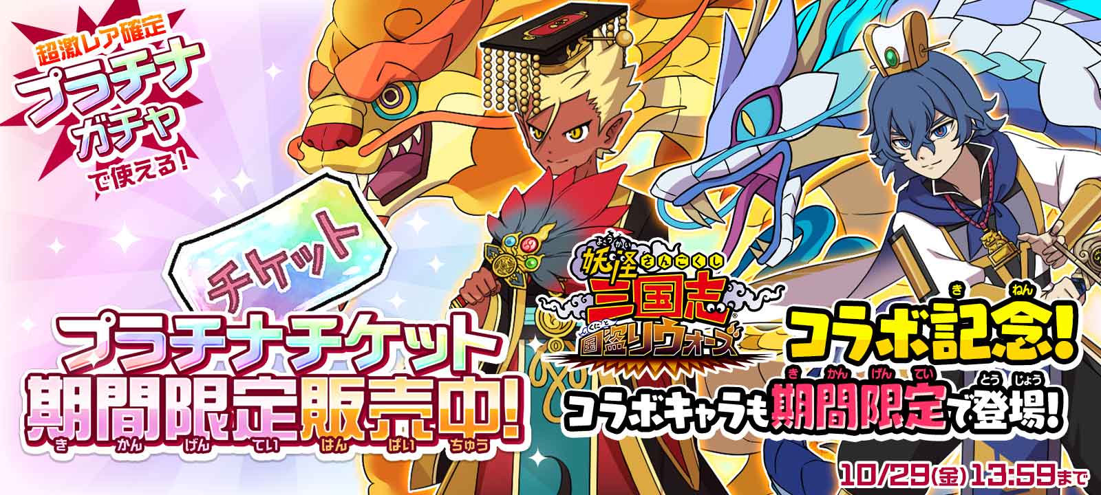 妖怪三国志コラボキャラクターも期間限定登場!「プラチナチケット」販売!