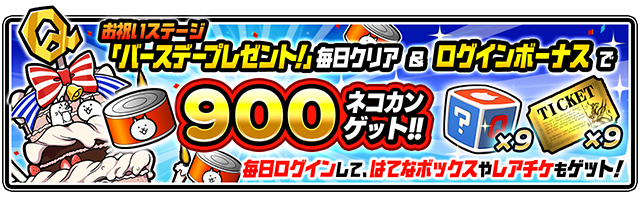 イベント期間中、毎日0時にステージが再登場するので毎日クリアして大量のネコカンを手に入れよう!