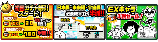 また、イベント期間中「EX」キャラの購入に必要なネコカンの数が半額に!